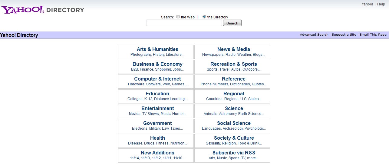 - The big, international, all encompassing directories such as Yahoo and Dmoz